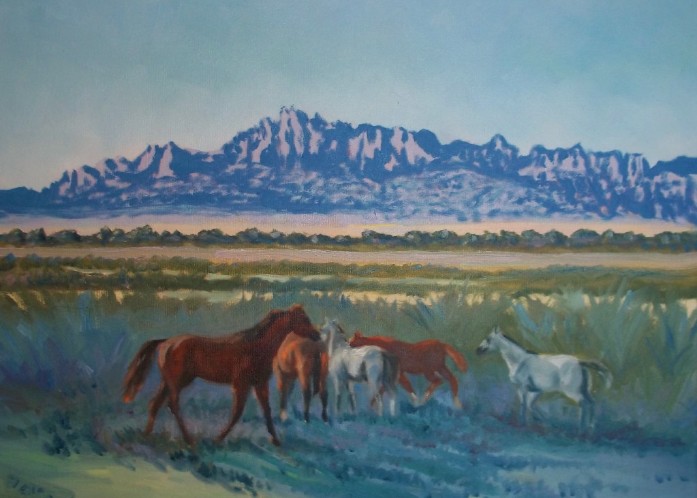 "THE KENTUCKIAN AND MARES AT SUNDOWN" oil, canvas, 18 x 24 , 2013