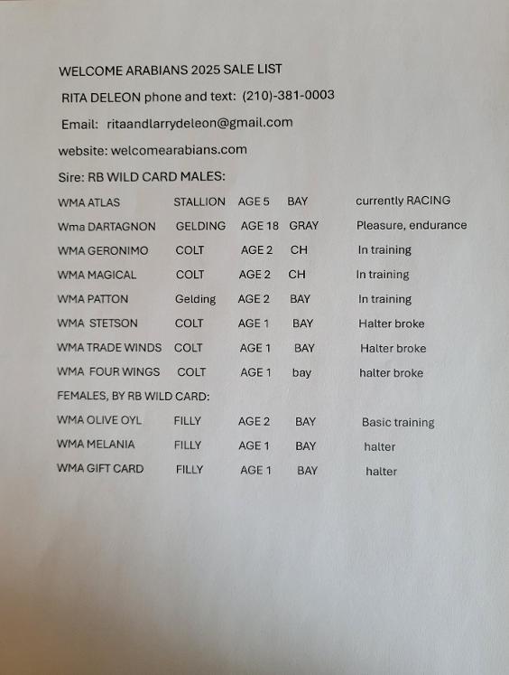 WMA STETSON: 1 YEAR OLD GELDING BY RB WILD CARD OUT OF SLUFFYS GIZMO, A multiple race winning mare. SOUND, EXCELLENT RACE OR ENDURANCE PROSPECT, GOOD DISPOSITION, TEXAS ACCREDITED FOR RACING BONUS MONEY! HERES THE REASONABLE PRICE WAY TO GET A RACE BRED WMA ARABIAN! FOR SALE.